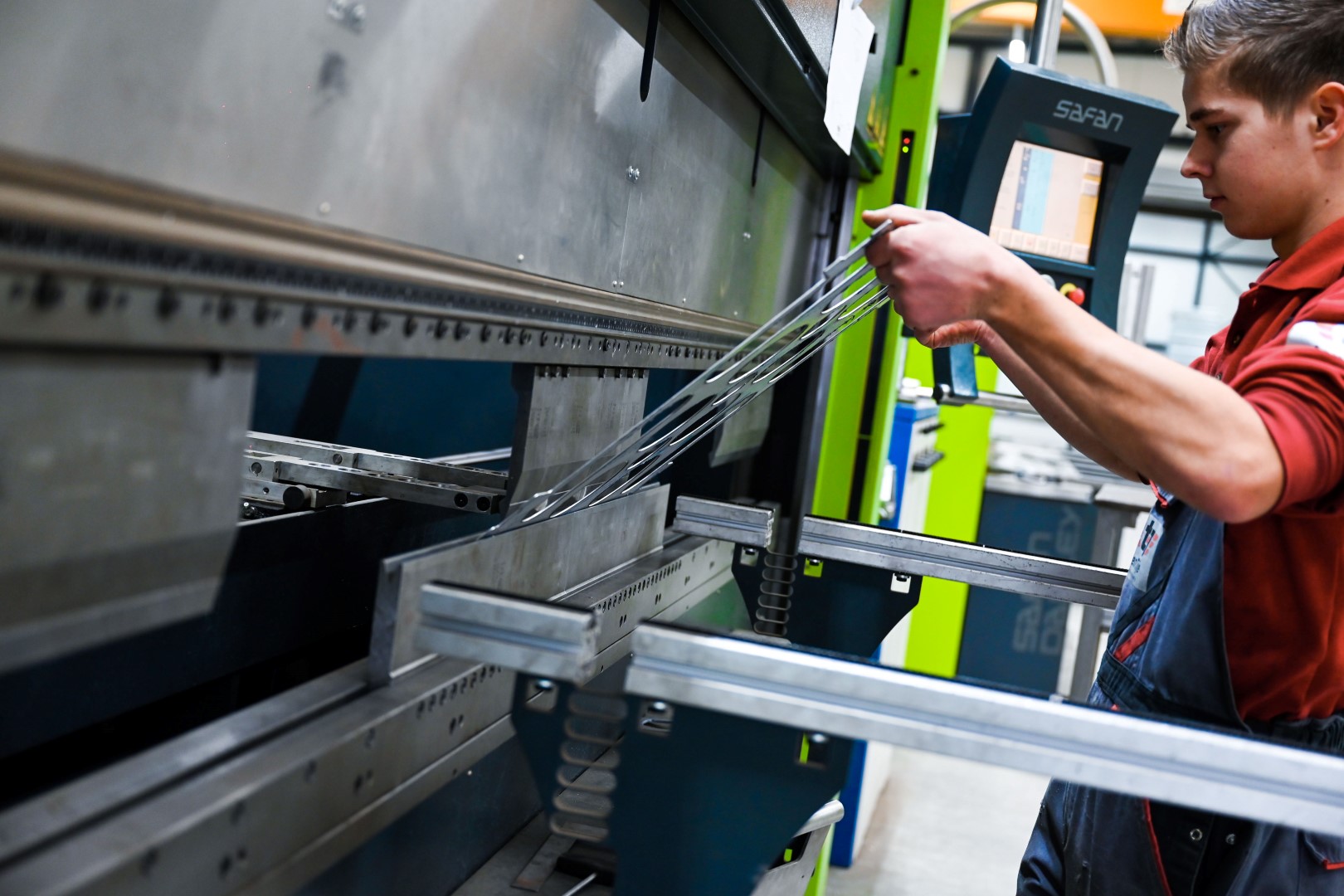 Op de kantbank kunnen onderdelen tot wel 3 meter gebogen worden. Door het uitgebreide gereedschap kunnen veel vormen en materialen gebogen worden.